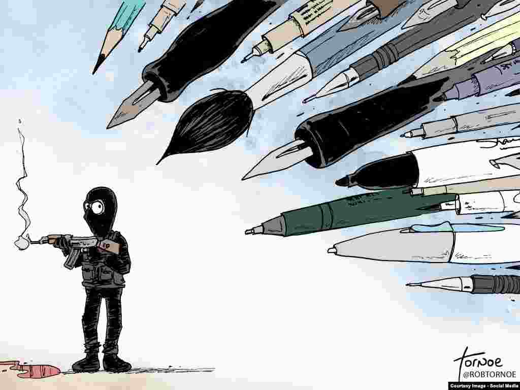 Политические карикатуристы со всего мира ответили рисунками террористам за убийство своих коллег-карикатуристов из французского журнала Charlie Hebdo