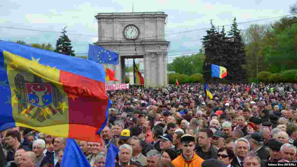 На площади собрались 40 тыс. человек, которые требовали евроинтеграции и расследования пропажи из трех банков страны около миллиарда долларов - пятой части ВВП республики. Фоторепортаж Europalibera.org