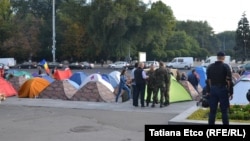 К утру понедельника палаточный городок, который протестующие назвали "Городком достоинства и справедливости", увеличился почти до 100 палаток, они занимают примерно четверть центральной площади Кишинева.