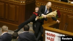 В Верховной Раде Украины произошла драка между депутатами фракции "Блок Петра Порошенко" и "Народный фронт" во время выступления премьер-министра Украины Арсения Яценюка.