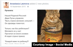 Сейчас Анастасия – в Киевском следственном изоляторе, а страничку ведет ее мама. Месяц назад Леонову задержала Служба безопасности Украины – во время спецоперации, развернутой в Киеве и Харькове.