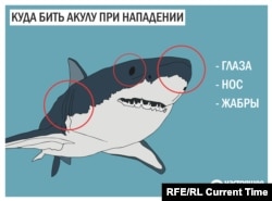 По подсчетам экспертов, шанс быть укушенным акулой – один к 11,5 миллионам. Если вы тот самый "счастливчик" – главное не паниковать и оказать ей активное сопротивление. Лучше всего ударить акулу кулаком в глаз, нос или жабры. Причем удар в жабры, говорят эксперты, действеннее удара в нос.