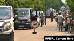 "Пошли, дед, пошли.. раз, два, три…" – это первый этап пересечения линии разграничения. Нейтральная зона. Здесь собираются жители так называемых "ДНР" и "ЛНР". Один пункт пропуска уже пройден. Теперь нужно выстроиться в очередь на автобус, чтобы добраться до второго пропускного пункта на расстоянии 15 км, где опять придется простоять несколько часов в очереди, пока пограничники проверят документы и осматрят багаж.