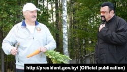 Лукашенко встретился с американским актером Стивеном Сигалом и накормил его морковкой