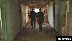 Военные показывают нам пробитую дыру в крыше и часть комнаты, в которой полностью снесена стена. По их словам, такие разрушения вызваны применяемыми сепаратистами АГС (автоматическими станковыми гранатометами), но в первую очередь минами 122-го и 152-го калибра. Сила их разрыва настолько велика, про пробивает бетонные перекрытия.