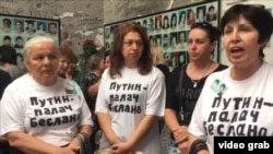 Участницы акции протеста требовали расследовать трагедию 2004 года. Говорили о том, что во время освобождения школы, когда заложники находились внутри, специальные подразделения вели шквальный обстрел школы, в том числе, из огнеметов и танков.