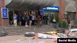 Активисты "Азова" утром 9 сентября в Киеве заблокировали офис застройщика "Киевгорстрой". Как сообщает в фейсбуке журналистка Анна Недогибченко, утром под зданием состоялась акция протеста и столкновения с применением дымовых шашек. На митинг вышло около трех десятков человек: