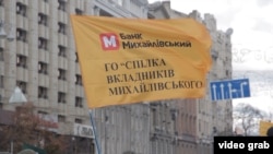 Несколько сотен вкладчиков банка "Михайловский" 3 ноября вышли на Майдан Независимости в Киеве, требуя вернуть им деньги. Банк обанкротился полгода назад: люди остались ни с чем, а власть, по их мнению, бездействует