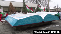 В городе Гиссаре недалеко от Душанбе установлен памятник книге президента Таджикистана Эмомали Рахмона "Таджики в зеркале истории".