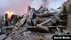 Корреспондент Радио Свобода побывал на месте катастрофы. По его словам, упавшие обломки, разбросаны на большой площади. Пожар на самом грузовом самолете удалось потушить.