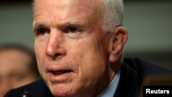 По словам Джона Маккейна, следует вводить больше санкций против России. "Мы не должны ослаблять их," - сказал он. "Если мы не будем сохранять эти санкции и даже увеличим их, это будет стимулировать Владимира Путина, который является военным преступником," - заявил сенатор. Он уточнил, что когда самолеты уничтожают больницы в Алеппо и убивают невинных людей, женщины и детей, это является военным преступлением.