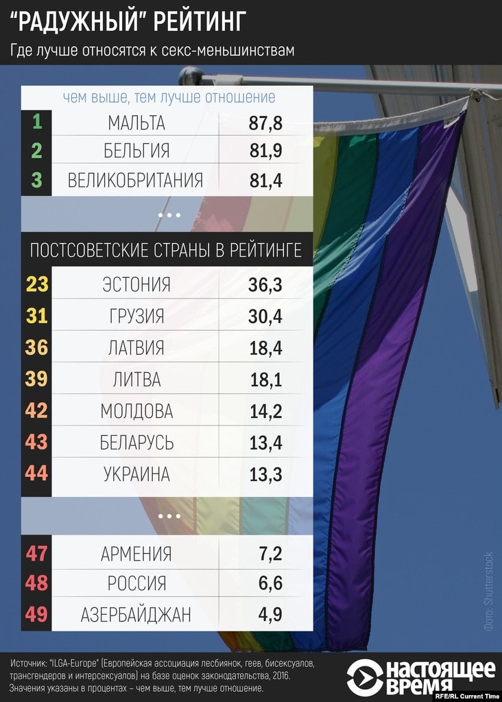 Мальта, занявшая в этом году первое место в рейтинге, с 2010 года наиболее продвинулась в вопросе признания прав членов ЛГБТ-сообщества. И это – несмотря на то, что еще в 2011-ом страна оставалась одной из двух в мире, где были запрещены разводы, и это единственное государство Европы, где до сих пор запрещены аборты.