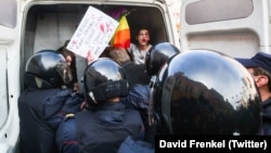 В Петербурге днем 1 мая на Невском проспекте полицейские задержали несколько ЛГБТ-активистов, которые требовали отправить "в Гаагу" главу Чечни Рамзана Кадырова.