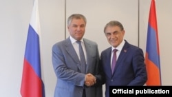 Но, введя запрет на "иностранные права", Москва тут же подсказала Армении решение проблемы: предложение прозвучало на встрече спикера Госдумы Вячеслава Володина с председателем парламента Армении Арой Баблояном.