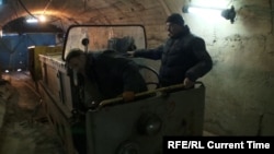Самый последний этап пути – узкая штольня длиной 4 км, по которой ездит что-то среднее между шахтёрскими вагонетками и детским паровозиком. Тоннели и помещения в горе Андырчи прорубили отряды метростроевцев из Баку и Минска – отсюда и буква "М" на входе.