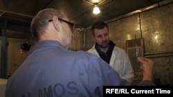 Перед входом в лабораторию все обязательно переодеваются и переобуваются – чтобы с грязью и пылью на ботинках и одежде не приносить с поверхности земли изотопы космического происхождения: они влияют на радиационный фон. "Он здесь подавлен в 15-20 раз по сравнению с обычными помещениями за счет специального низкофонового бетона, – объясняет Александр Шихин, научный сотрудник Баксанской нейтринной обсерватории. – Бетона здесь примерно 70 см-метр".
