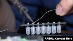 Жибек получила диплом по экономическому анализу, но теперь хочет научиться чему-то новому и с удовольствие паяет микросхемы и транзисторы в плате.