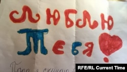 "Дорогой папа, я очень скучаю по тебе. Я надеюсь, что скоро тебя выпустят. У меня все хорошо, учусь нормально. С прошедшим тебя Днем рождением (орфография сохранена). Как у тебя там дела? Напиши по возможности. Люблю тебя от всей души. Твоя дочь Наташа", - написала девочка.
