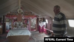 "Все, все что тут есть – все из дому поприносили", – говорит Николай Вознюк. Даже церковные колокола в этом палаточном храме тоже самодельные, сделаны из старых кислородного и газового баллонов.