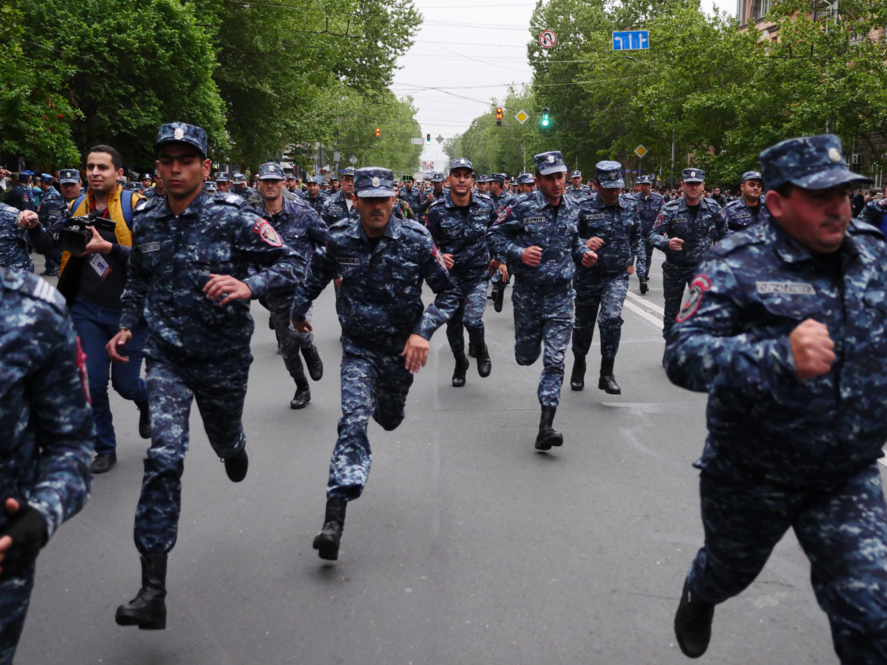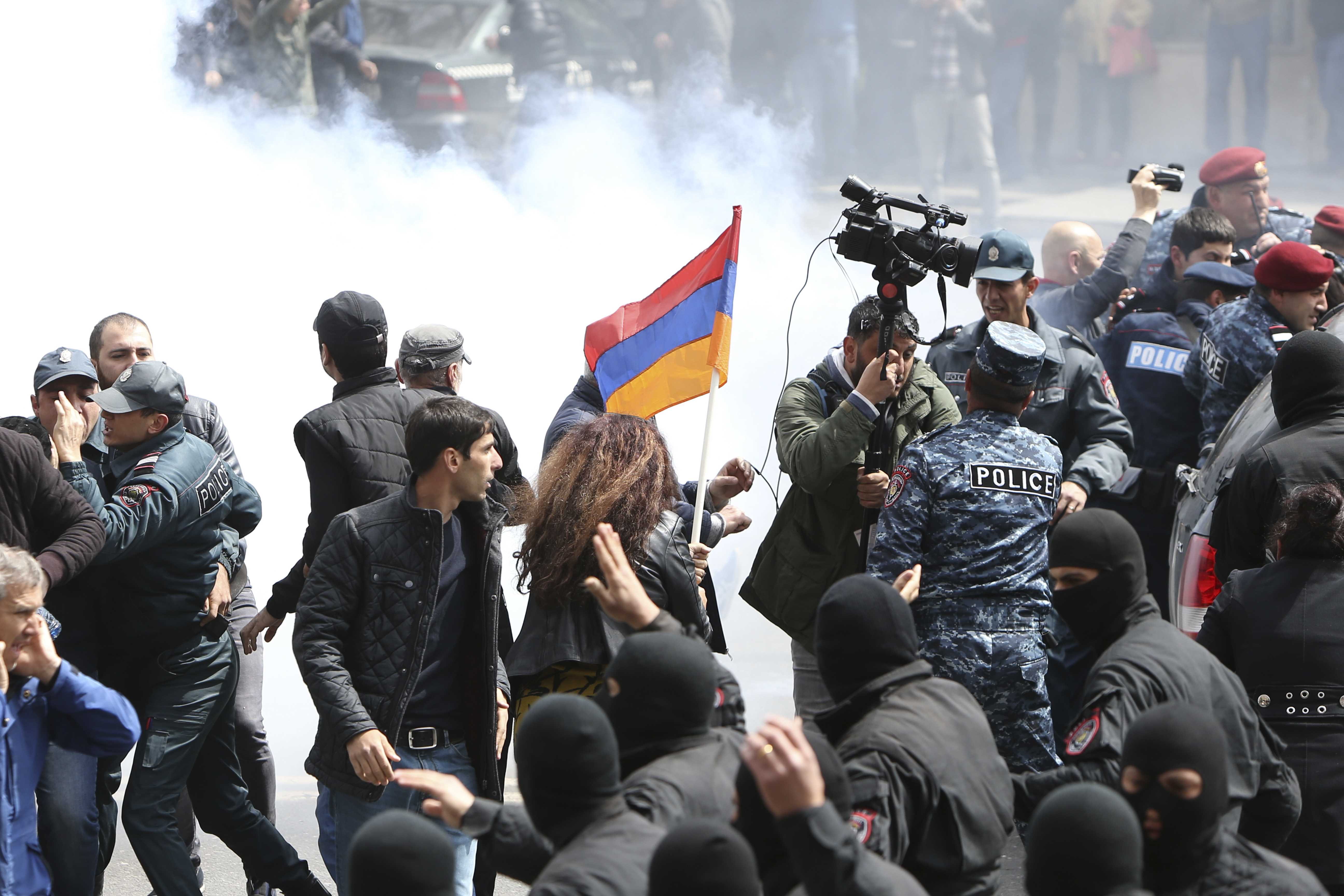 Днем 22 апреля полиция начала разгонять шествия в Ереване светошумовыми гранатами, часть людей избивали резиновыми дубинками, нескольким журналистам угрожали и разбивали технику, а на некоторых протестующих в столице нападали организованные группы в масках и без опознавательных знаков.