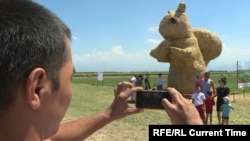 "Идея была в том, чтобы привлечь внимание к агронауке вот таким вот образом, – рассказывает Бауыржан Боранбаев, сотрудник Казахского института механизации и электрификации сельского хозяйства. – На сетку накладывалась солома, а потом затягивалась снова сеткой. Глаза белки сделаны из пластикового тазика".
