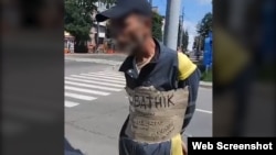"Дело не в том, что гуманисты, дело в том, что я такую же картинку видел в Славянске", – пытался вступиться за привязанного один из прохожих.