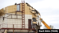 – Это не стройка, это разбор конструкций. Напомню, что снос начался со второй попытки. Первоначально в мае в присутствии временно исполняющего обязанности губернатора начали сносить неосновное здание. Но все работы были прекращены на том основании, что, по словам Следственного комитета, основное здание является доказательством по делу, на него наложен арест, и его нельзя трогать. Сейчас, когда Следственный комитет заявил, что все работы прекращены и снят арест, начался разбор этого здания.