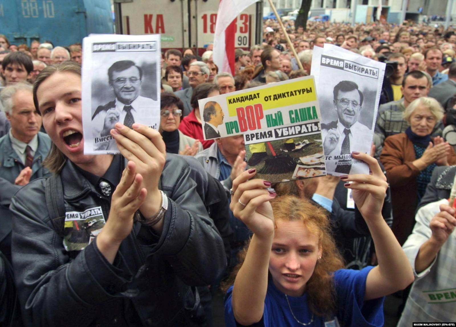 Акция в поддержку оппозиционного кандидата Владимира Гончарика в Минске 2 сентября 2001 года. Фото: EPA-EFE