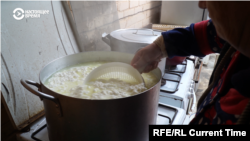 Беслану в приготовлении сыра помогает мама. Рецепт достаточно прост. "Берем молоко, сыворотку и соль. Молоко нагреваем до 90-95 градусов, верхняя точка кипения молока, когда пузырьки по стенкам появляются, мы добавляем сыворотку, белок отделяется от сыворотки, появляется белковый сгусток, который мы собираем в форму, солим, – делится рецептом фермер. – Молоко сворачивает сыворотка, не сычужный фермент. Он должен быть самопрессованный, и, самое главное, он должен делаться из качественного молока".