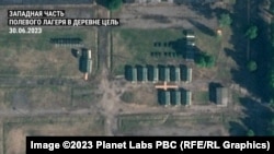 Тридцатого июня белорусская служба Радио Свобода получила спутниковые снимки более высокого качества. На них можно детально рассмотреть сооруженные возле Цели объекты.