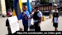 Шипицын накануне участвовал в пикете в защиту крымских татар. Когда полицейский попытался задержать активиста, он споткнулся и упал. При падении пластиковое древко флага Украины, который он держал, сбило с полицейского кепку.