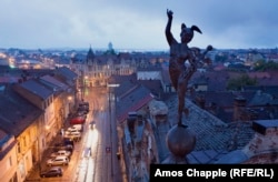 Статуя Гермеса, древнегреческого бога торговли, путешествий и воровства, – на углу здания 1909 года в городе Тимишоара.