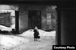 Он очень много ездил по Украине. И вот этого у него много. Он выбирал типичные ситуации образа жизни советского человека. Он в квартиры не заходил, не мог, а кроме того, он был фотографом архитектуры. Поэтому абсолютное большинство его фотографий сделаны на улице, на фоне домов, на фоне оформления улиц. Человек у него – часть города. Он выбирал не эстетические моменты, а выбирал социальные моменты: очередь; появилась американская машина – он фиксирует толпу возле этой машины; продали селедку и выливают маринад на улицу; грязная подворотня и идет несчастная женщина. Может, она и не несчастная, но в окружающем ужасе она выглядит беспросветно. С другой стороны, и жизнь беспросветна в этой подворотне с надписью "Слава КПСС".