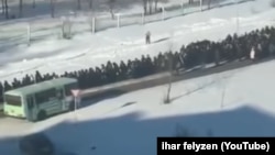 На съемке, опубликованной 8 января пользователем ihar felyzen на ютубе, похороны криминального авторитета комментирует женский голос. На кадрах видно, как колонна из людей и автомобилей растянулась на несколько сотен метров. Есть ли среди провожающих люди в форме, на кадрах не видно.
