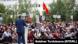 Этот митинг можно считать самым массовым из проведенных Атамбаевым за последний год: к началу мероприятия у здания медиафорума в центре города собралось около тысячи человек.