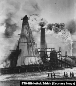 Уникальные фотографии из архива Швейцарской высшей технической школа Цюриха библиотеки (Zurich’s ETH Library) показывают, как добывали нефть на Апшеронском полуострове 100-150 лет назад.