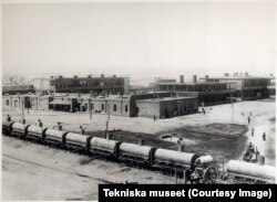 Цистерны с нефтью от добывающей компании братьев Нобель Branobel на железной дороге в Баку: