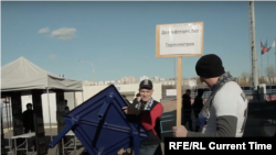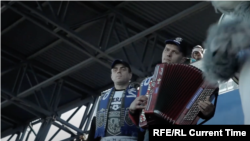Статус звезды – еще и ответственность, считает баянист Валера. Он показывает пример, и не только детям. Перед очередным матчем любимой команды у входа на трибуны Валера ставит пластиковый стол. Его верный напарник Андрей тоже рядом – держит в руках табличку "Дезинфекция рук". На столе – коробка с медицинскими масками и пластиковая бутылка с антисептиком. "Для вида надо сделать", – слышно за кадром. Спросом этот пункт профилактики у болельщиков не пользуется.