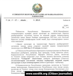 Узбекская служба Радио Свобода/Озодлик выяснила, что в Новый год в различных элитных санаториях и на курортах Узбекистана смогли за счет бюджета отдохнуть и подлечиться 1053 чиновника. Премьер-министр Абдулла Арипов 27 декабря 2024 года подписал нигде открыто не обнародованное специальное распоряжение правительства Узбекистана №853-Ф на эту тему. Документ был передан в редакцию Радио Свобода, журналисты подтвердили его подлинность.