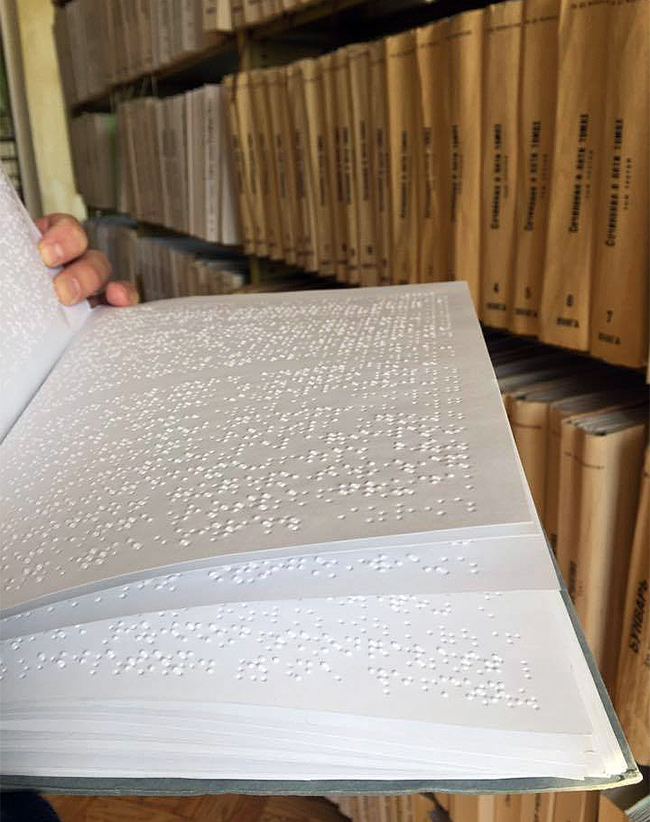 В Русиново есть своя библиотека. Книги местные жители могут получить бесплатно. Из-за особенностей шрифта, эти книги довольно громоздкие и тяжёлые. Но их все равно зачитывают до ровного листа. Для тех, кто не умеет или не любит читать по Брайлю, есть аудиокниги – на аудиокассетах и даже на флэшках.