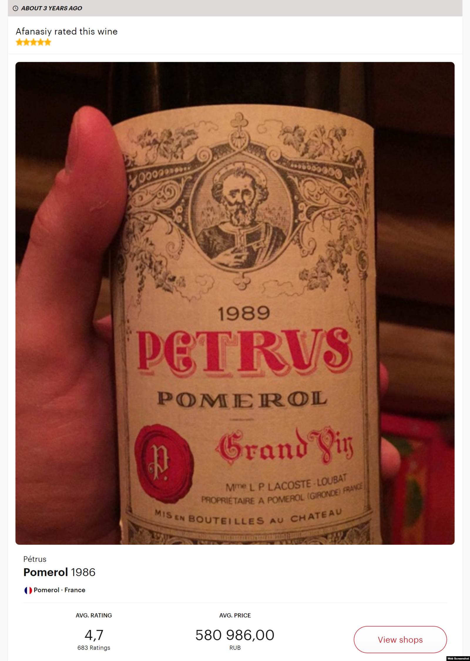 За четыре года Афанасий Медведев оценил более 70 вин. Среди них есть как относительно недорогие – за 20 евро (чуть больше тысячи рублей по курсу на август 2022 года), так и очень дорогие (4,6 тысячи евро за бутылку – более 270 тысяч рублей; например, французское красное сухое Petrus Pomerol урожая 2006-го). Иногда Медведев оставляет короткие рецензии. "Если бы у меня спросили, что такое вино", – емко охарактеризовал он бутылку Unico Reserva Especial (около тысячи евро – примерно 60 тысяч рублей).
