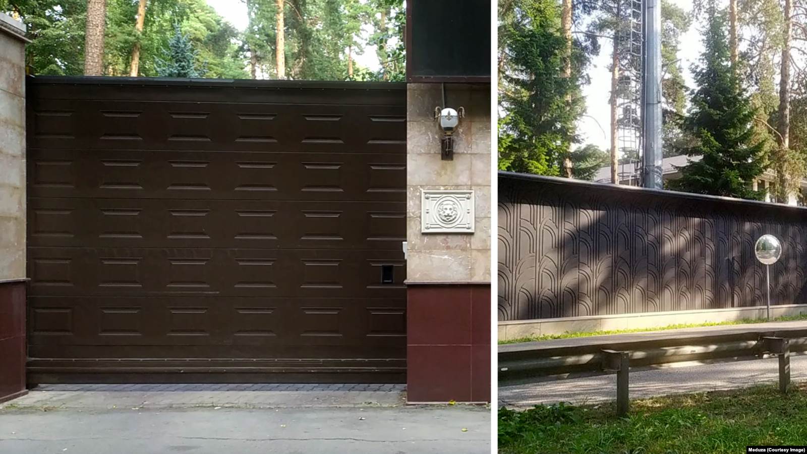 В поселок "Сосны-15" ведут два входа: неприметный, но увешанный камерами наблюдения, и парадный – за кованым забором с замысловатыми узорами. Рядом с последним – шлагбаум и небольшой сруб, где сидят охранники. Когда к шлагбауму подъезжает такси или курьер, охрана оставляет их на внешней парковке. Внутрь не пускают никого. "Тут не пройти, тупик", – объясняет охранник корреспонденту.