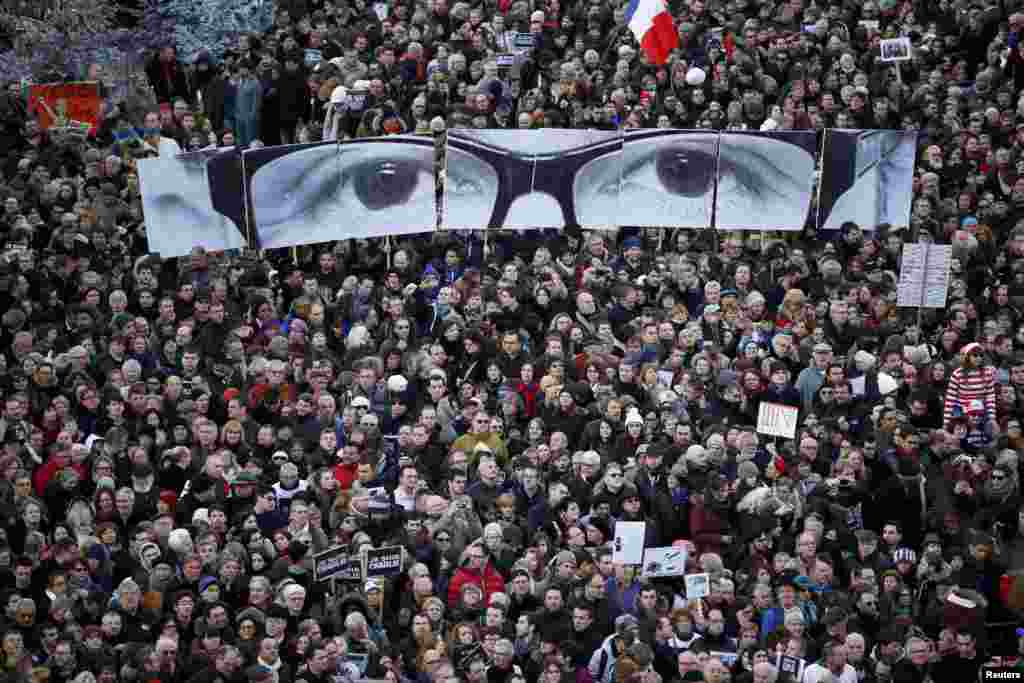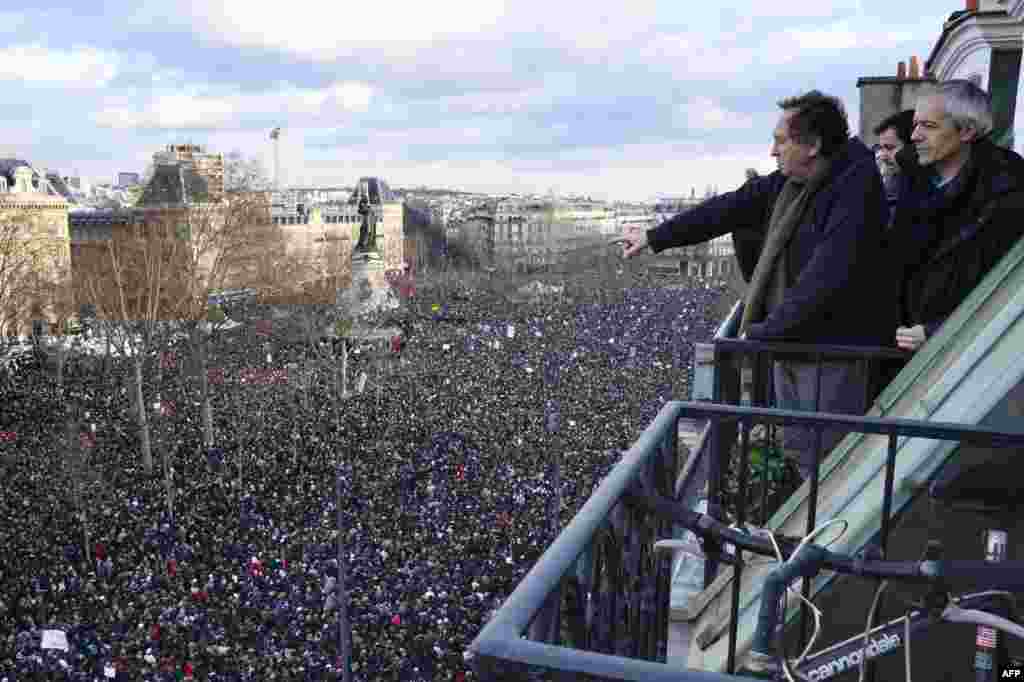 Более 1,5 млн человек и десятки мировых лидеров вышли в воскресенье на улицы Парижа на марш мира в память о жертвах террористических атак во Франции