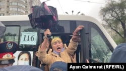 Неизвестные люди препятствовали корреспонденту Радио Азаттык в Шымкенте вести видеосъемку задержаний.