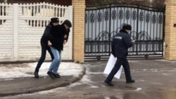 Ахмедьярову не позволили развернуть плакат у стен посольства. Практически сразу его схватили сотрудники специализированной службы охраны, которые вырвали из его рук плакат.