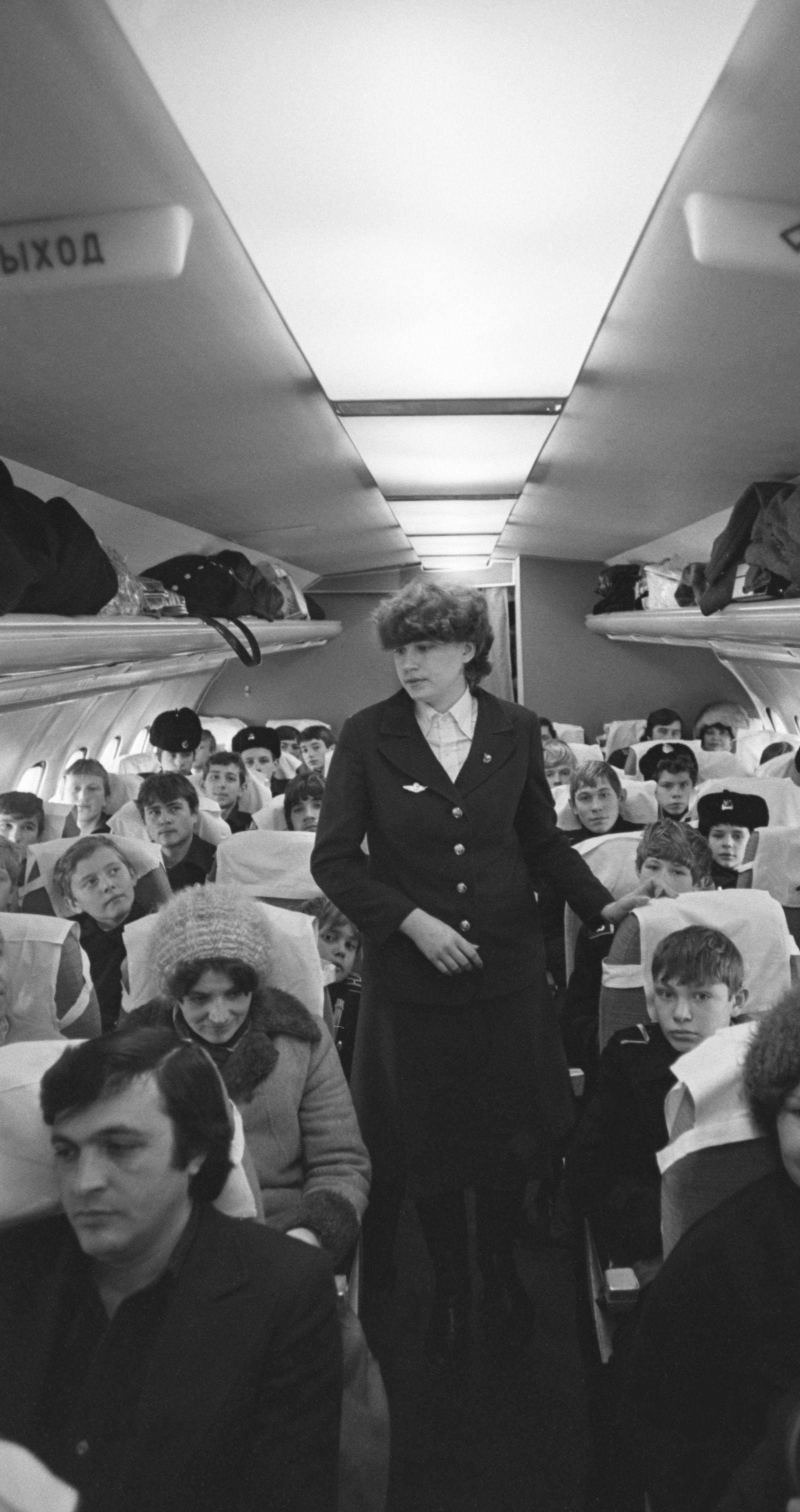 Салон самолета Ту-154, рейс Киев — Владивосток, 1986 год