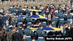 В украинском Харькове 6 октября прошла церемония прощания с курсантами и офицерами, которые погибли в авиакатастрофе под Чугуевом 25 сентября.