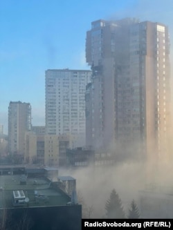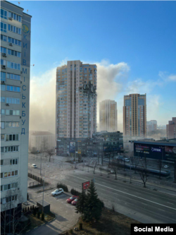 Позже УНИАН сообщил, что по многоэтажному дому на проспекте Лобановского было нанесено два ракетных удара. Вторая ракета попала в нижнюю часть здания.