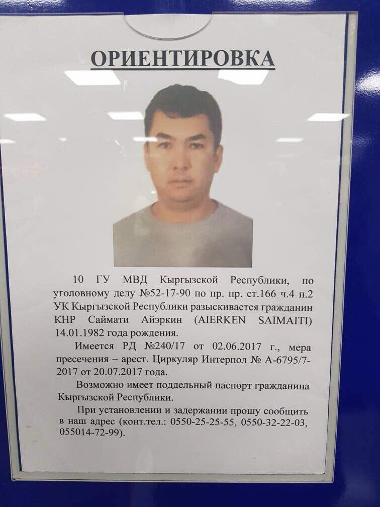 Объявление о розыске Саймаити (Фото: радио «Азаттык»)