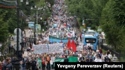 В Хабаровске продолжаются акции в поддержку задержанного экс-губернатора Сергея Фургала. Его подозревают в организации убийств и держат в московском СИЗО. Экс-губернатор вину не признает. После назначения врио губернатора Михаила Дегтярева митинги в регионе не прекратились. Участники акции в основном требуют справедливого суда над Фургалом, после назначения Дегтярева прозвучали требования отставки президента Владимира Путина.